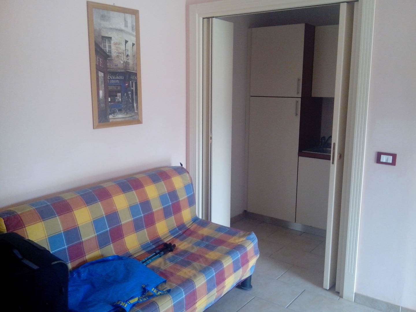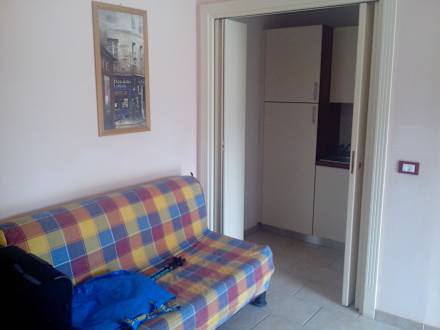 Wohnraum mit Schlafsofa und Küchenzeile