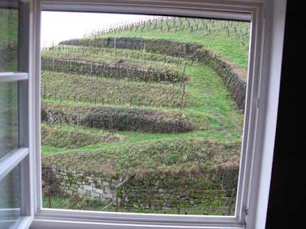 Blick aus dem Bad auf die Weinberge
