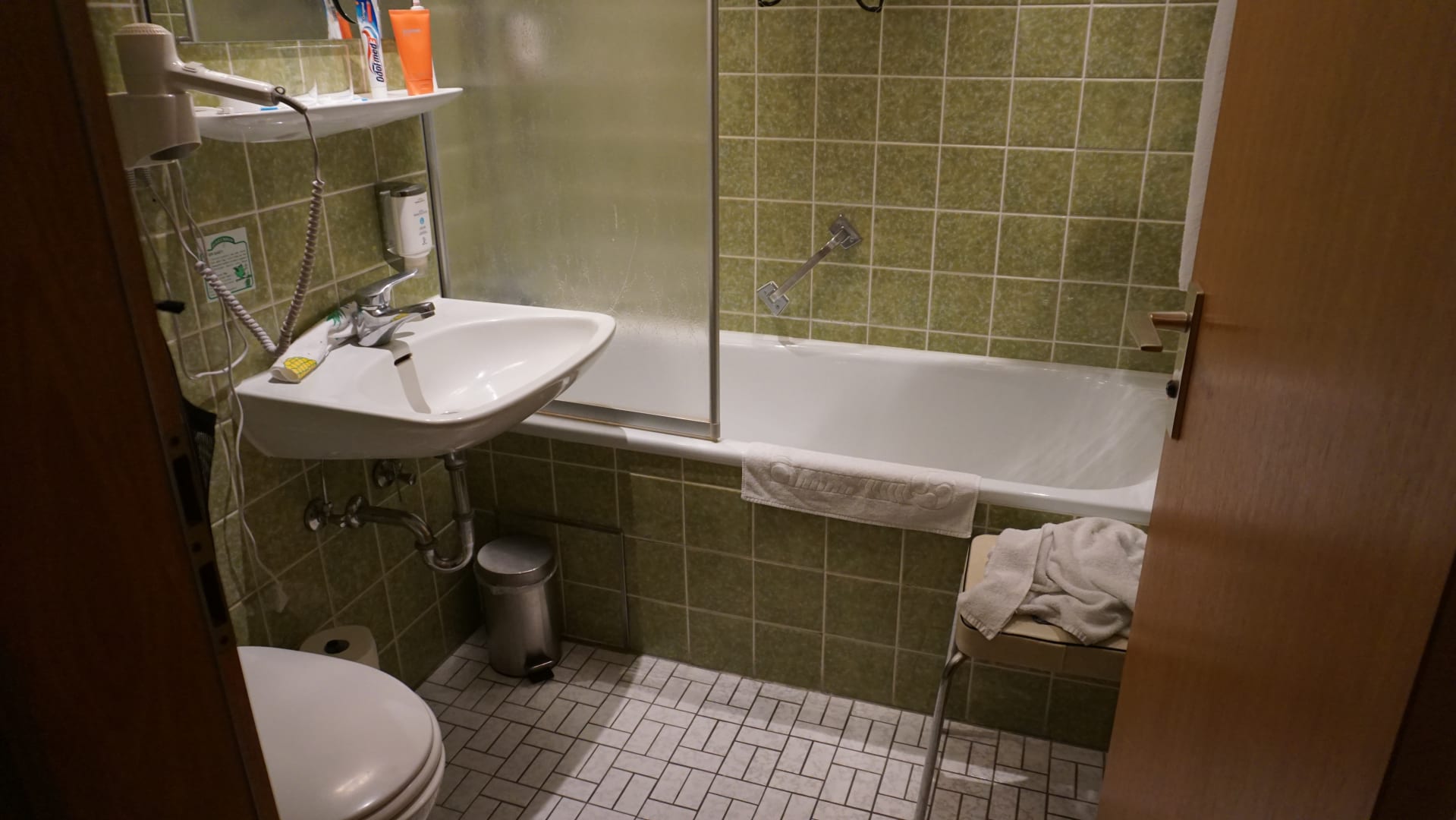 ZimmerFür ältere Menschen vollkommen ungeeignet! Zum Tiefgaragenstellplatz, 5,50 € / Tag, muss man min. 10 Min. durch unterirdische Gänge laufen. Und zuletzt noch das WLAN, was ständig abreist. Was alles ertragen lässt, ist die hauseigene Therme und die Ta