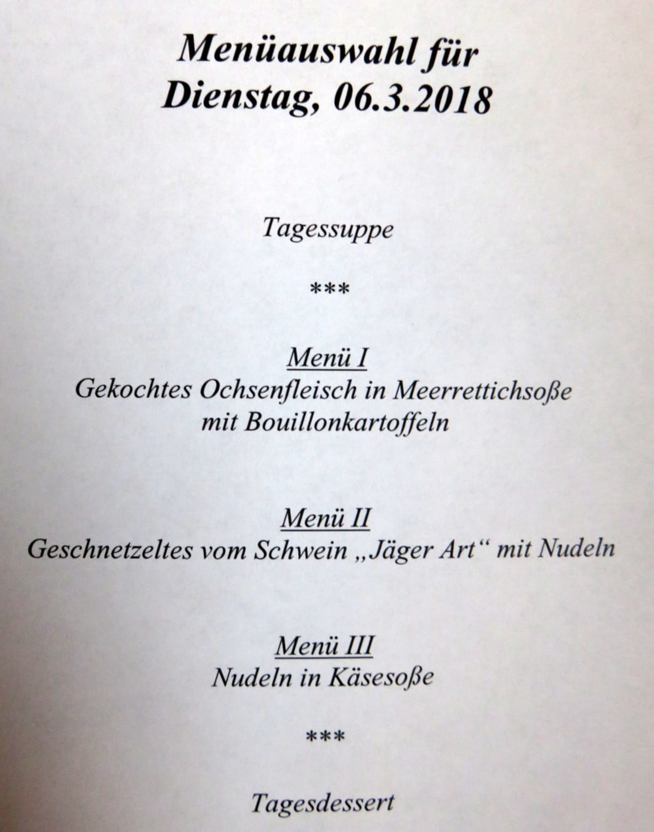 Beispiel eines Abendmenüs