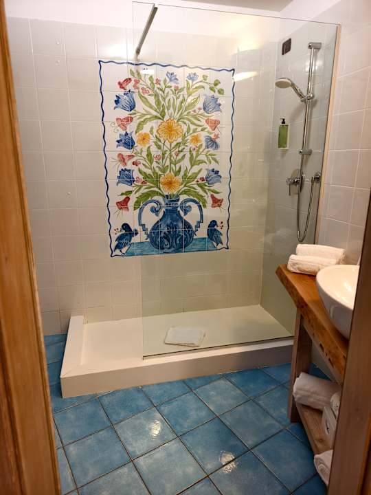 Dusche mit Bild in den Fliesen