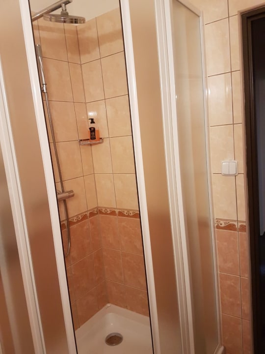 Eckdusche mit Handbrause und Regenduschkopf.