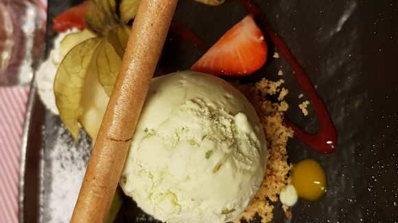 Pistazieneis mit Schokotörtchen