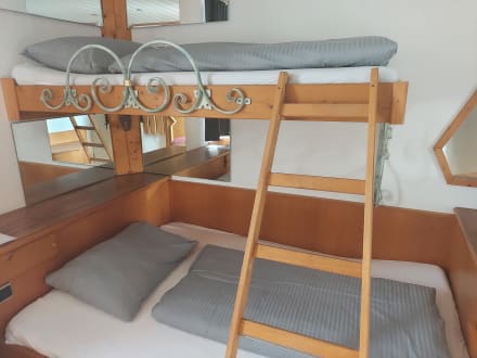 Etagenbett mit fest installierter Leiter und vielen Spiegeln