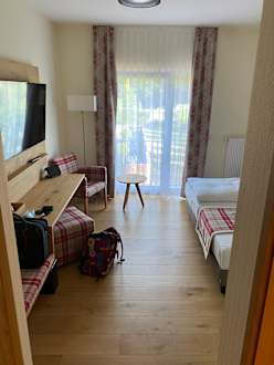 Helles, freundliches Zimmer mit gemütlicher Ausstattung.