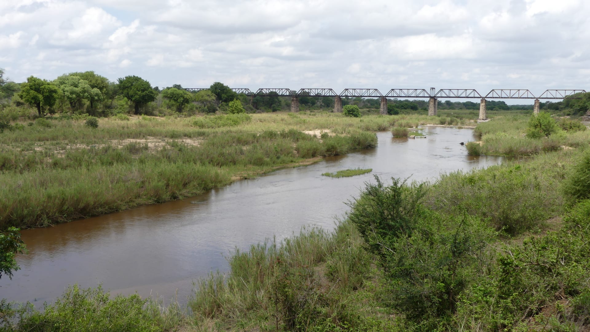 Flussblick mit ehemaliger Eisenbahnbrücke