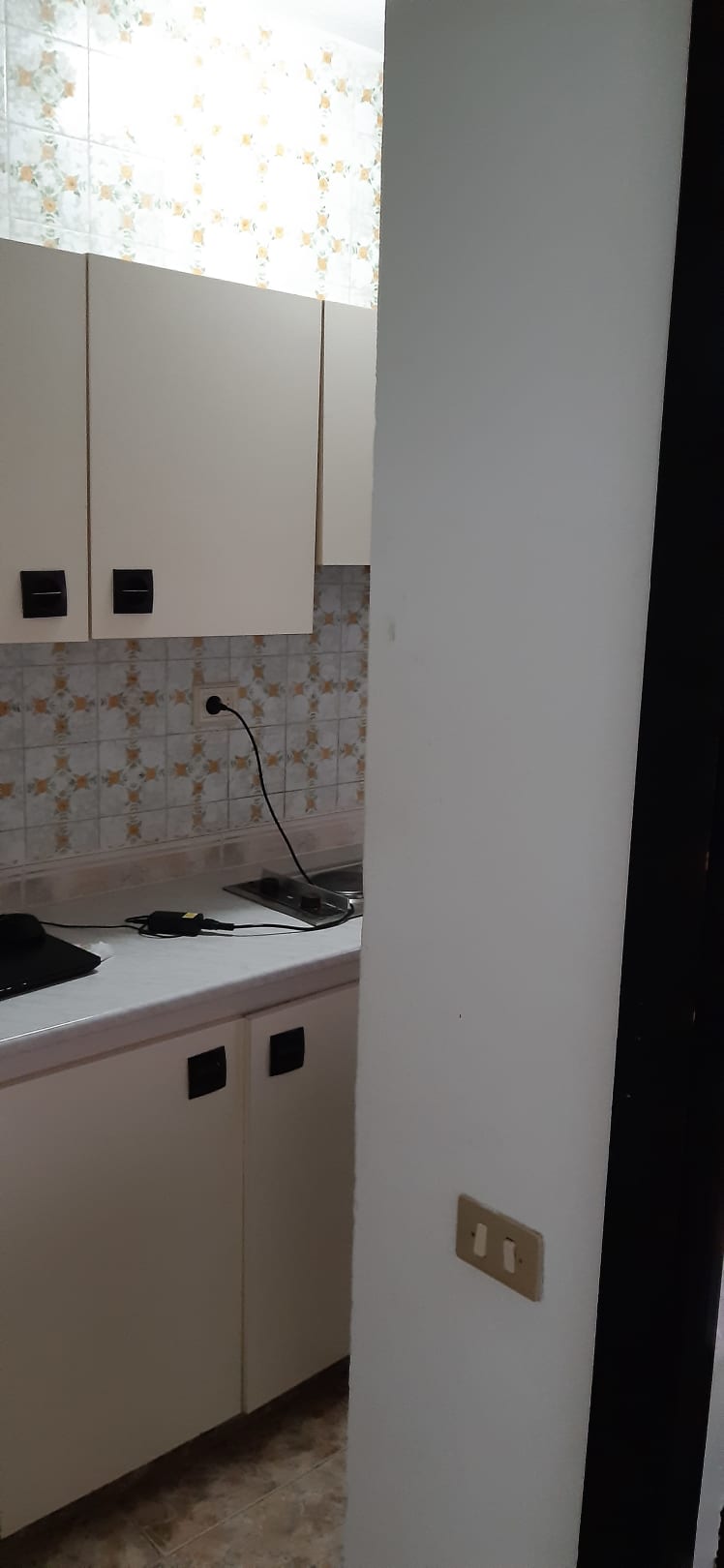 Die kleine Küche mit 2 Herdplatten sowie Besteck und Geschirr für zwei Personen