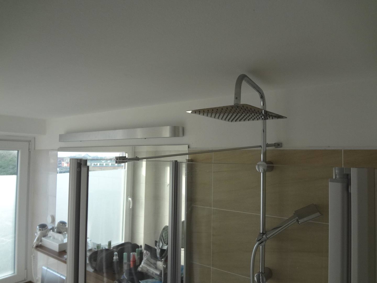 Der wunderschöne Duschkopf liegt 10 cm über der Duschabtrennung, für hochgewachsene Gäste (ab ca. 1,80 m) nicht ohne Überschwemmung beutzbar