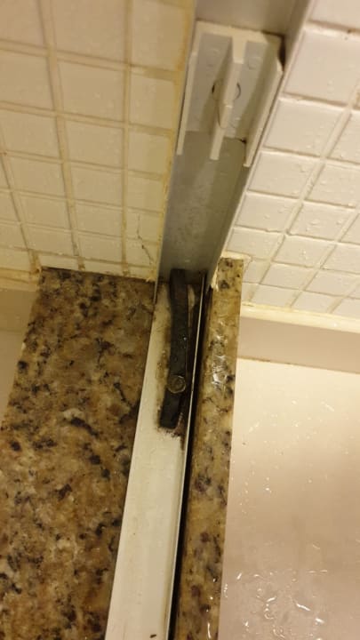 Alle Möbel und Einrichtungen im Zimmer sind sehr alt und lieblos zusammengestellt.