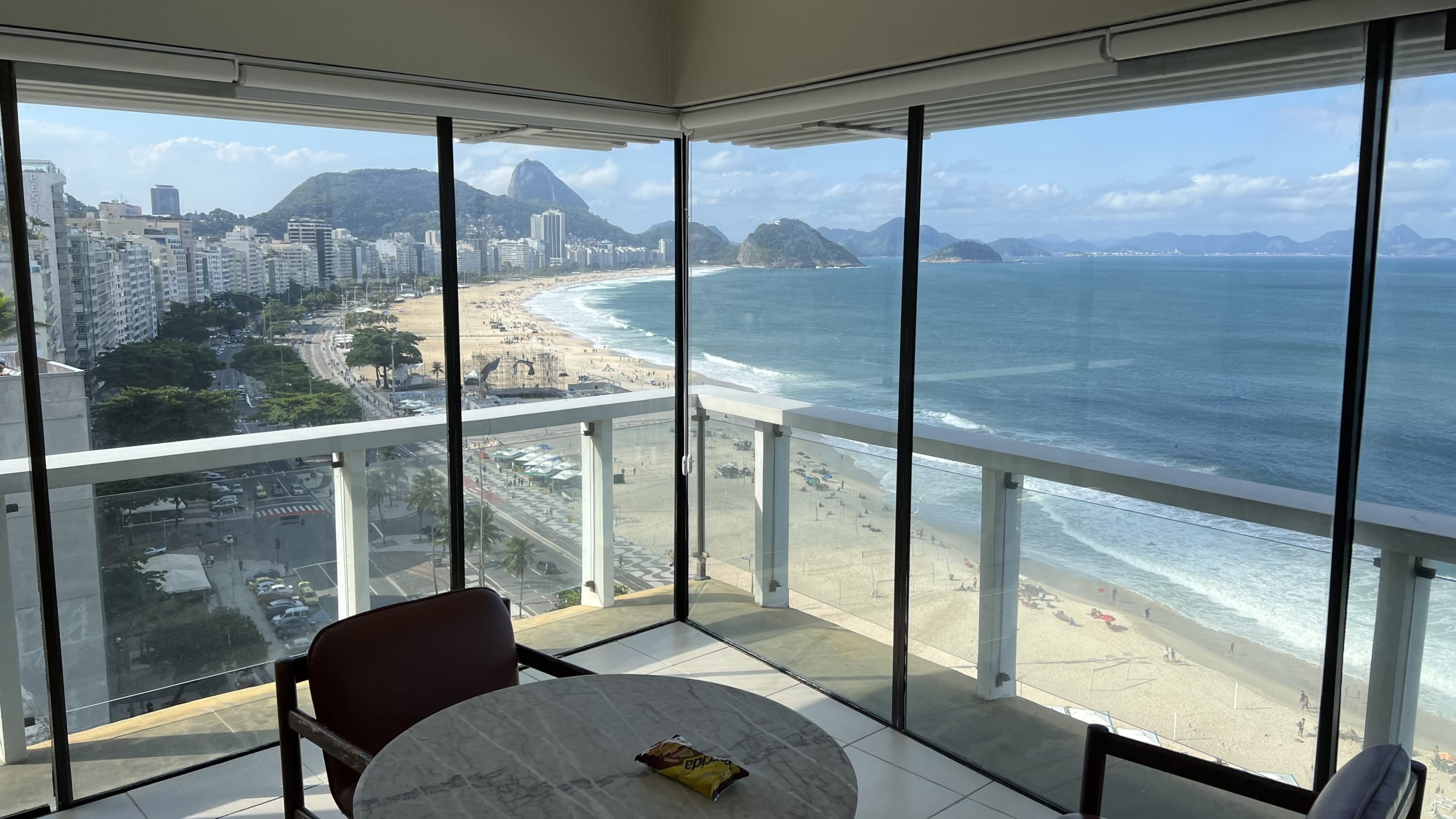 Balkon unseres Zimmers mit Ausblick auf die Copacabana.