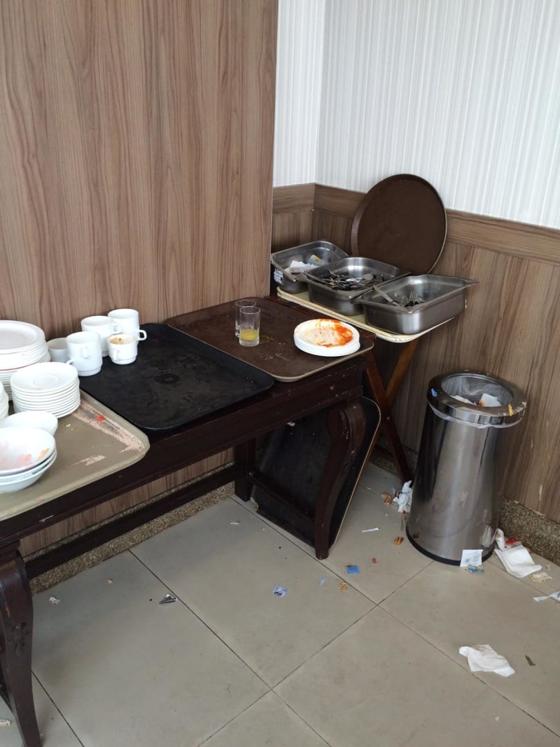 Abräumt-Station neben den Frühstückstisch.