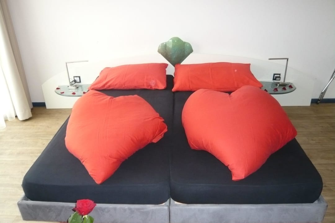 SchlafbereichDa es sich um ein Weekend for two handelte, wurde das ganze Zimmer hübsch mit Rosenblättern dekoriert.