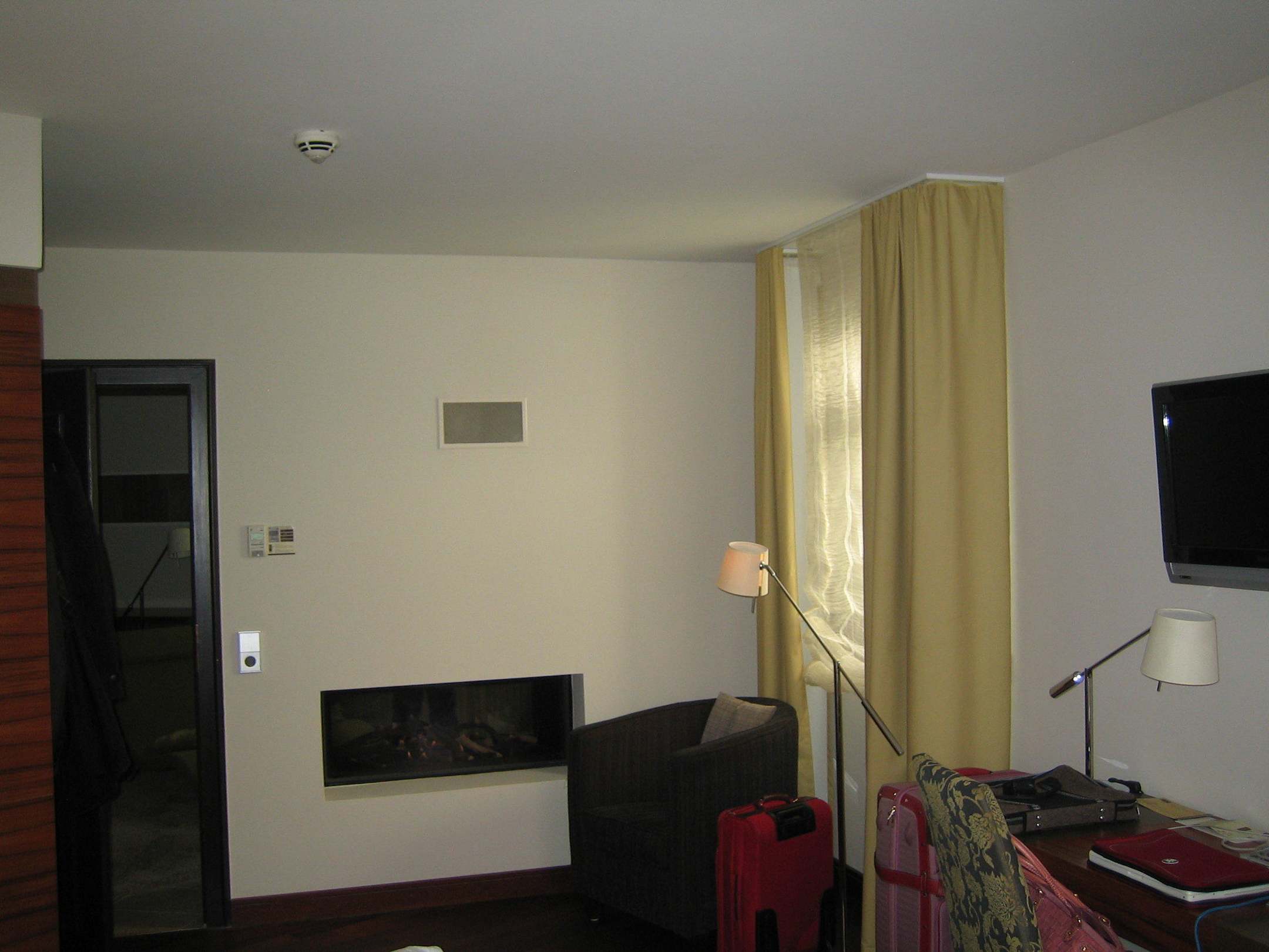 Schlafzimmer mit Blick auf den Kamin
