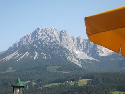 Blick von Terrasse auf den Wilden Kaiser