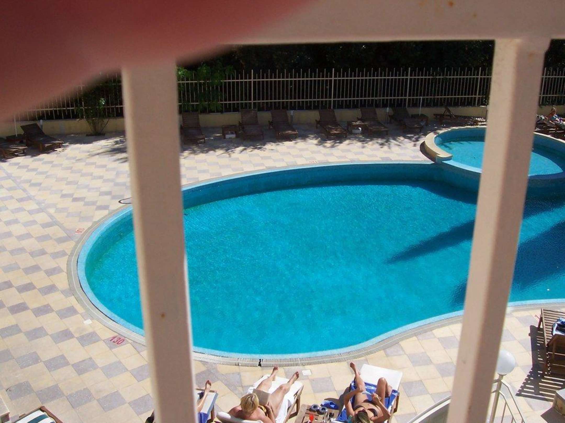 Ausblick vom Zimmer auf den Pool
