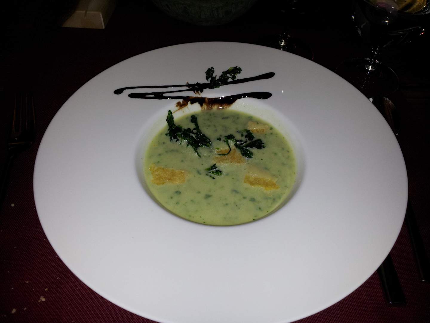 Zuchinicremesuppe mit gratinierten Parmesancrackern