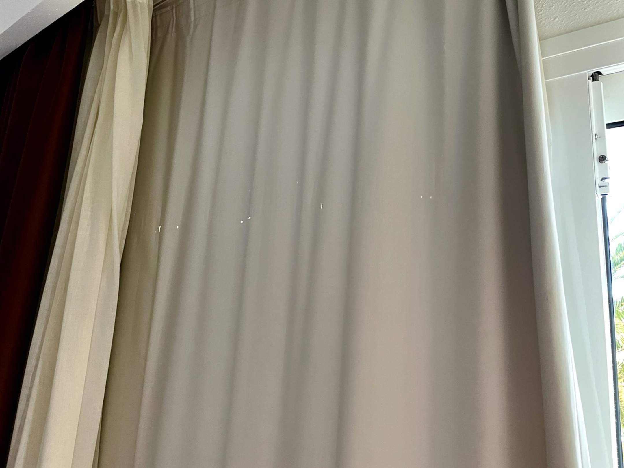 ZimmerLöcher im Verdunkelungsvorhang.