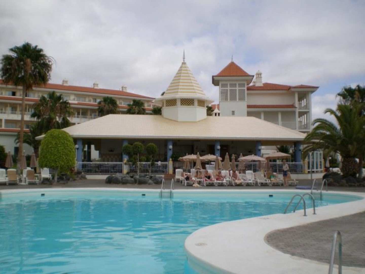 Una delle piscine,con il bar-ristorante relativo