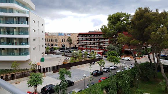 Bild vom Balkon auf die Aussenanlagen