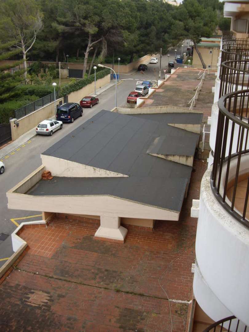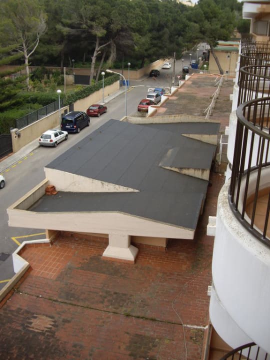Blick vom Balkon auf das VordachBlick vom Zimmerbalkon auf das "ansprechende" und "gemütliche" Hotelvordach.