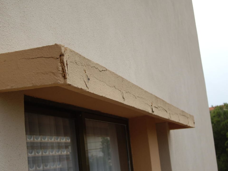 Putz und Farbe blättern abBeispiel wie die Farbe und der Putz schon abblättern.