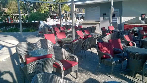 schön in der Sonne an der Poolbar