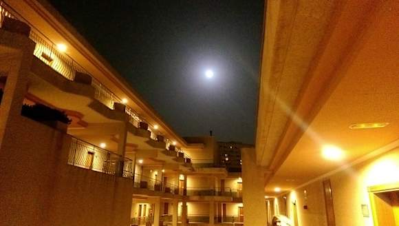 Mond über den Zimmer-Zugängen im B-Block