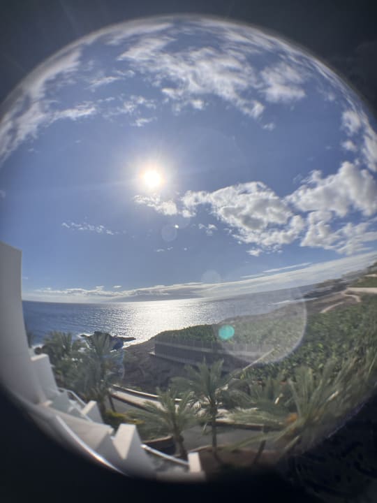 Ein Blick aus dem seitlich liegenden Zimmer auf Meer und Bananen Plantagen