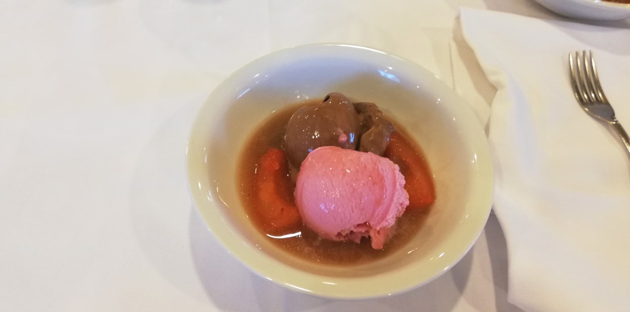 Gastrokaltes Eis, warmes Obst, mit Vitaminen Brandy, Obstler etc