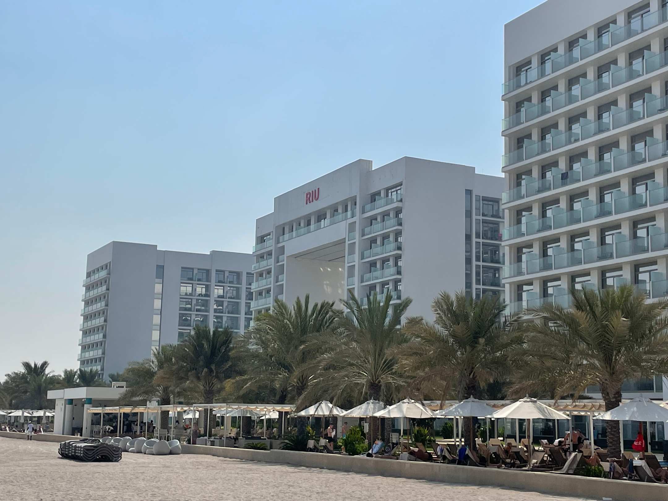 Blick vom Strand auf das Riu Dubai