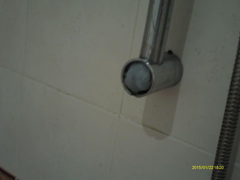 Notdürftig reparierte Armatur in der Dusche