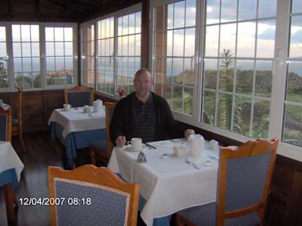 Unser Tisch im SpeisesaalUnser sehr schöner Tisch im wintergartenähnlichen Speisesaal hatte zur einen Seite Meer- und zur anderen Seite Bergblick.