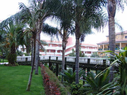 Aussicht vom Zimmer im EGunser Zimmer befand sich im Erdgeschoss, von wo aus man die Sicht auf den Pool und die Gartenanlage geniessen konnte.