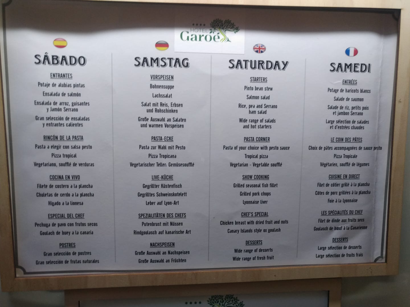 Speisekarte für Abends, täglich wechselnd