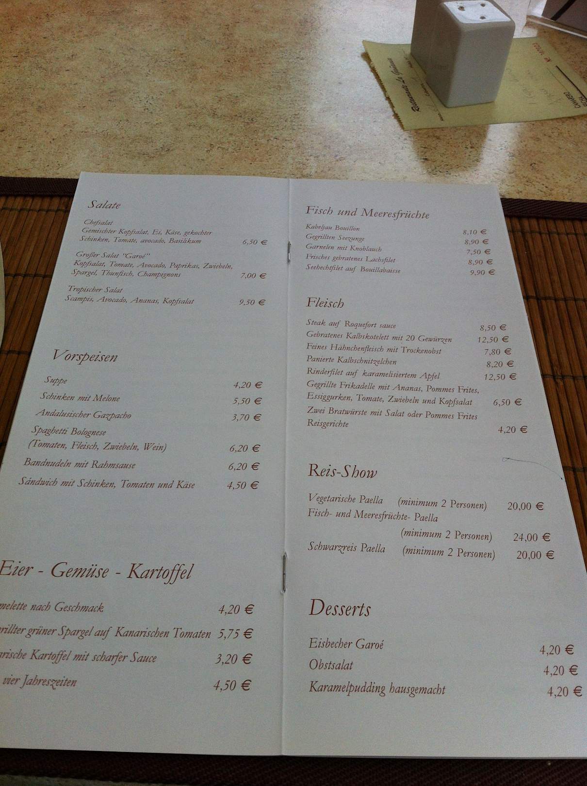Speisekarte Poolrestaurant