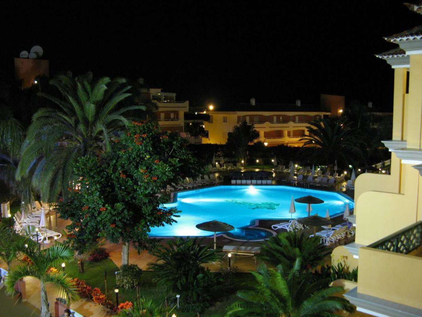 Blick auf den Pool bei Nacht