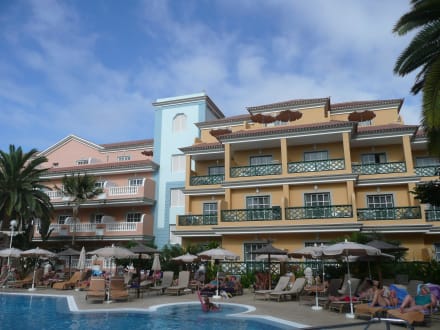 Ein Teilgebäude des Hotels v. Pool aus gesehen