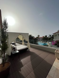 Blick von den „Daybetten“ auf den Pool.