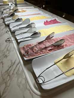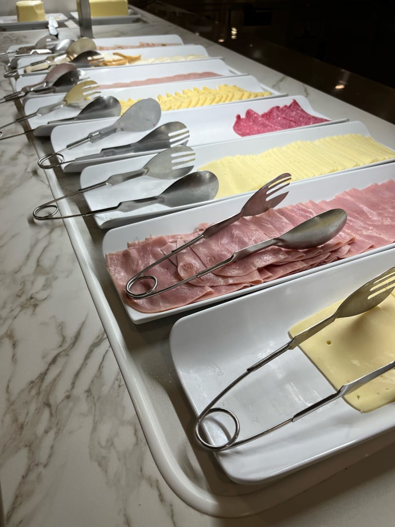 Auswahl Wurst und Käse am Frühstücksbuffet.