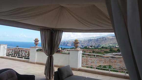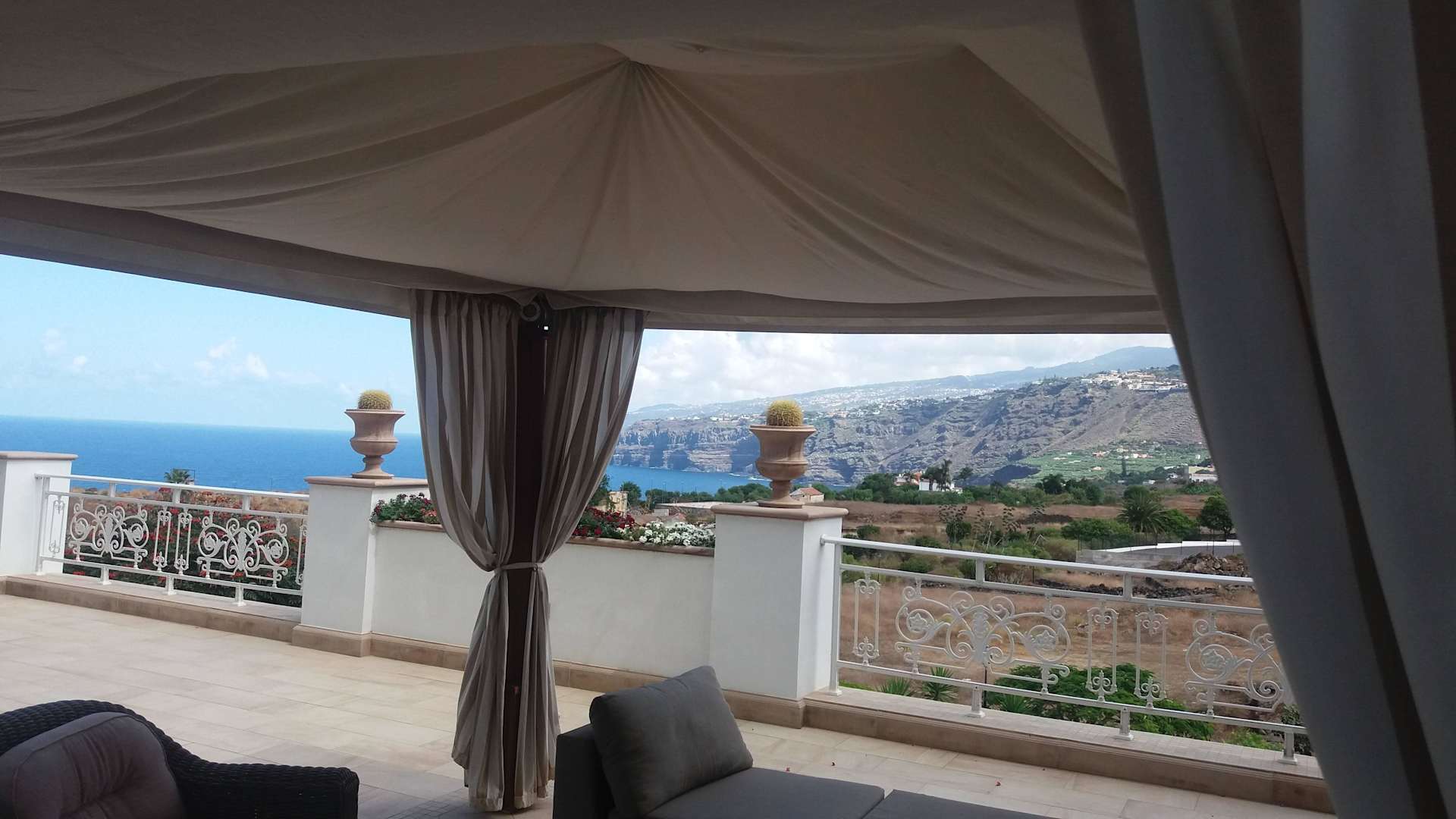 Seiten-Terrasse mit Aussicht auf Küste und Berge