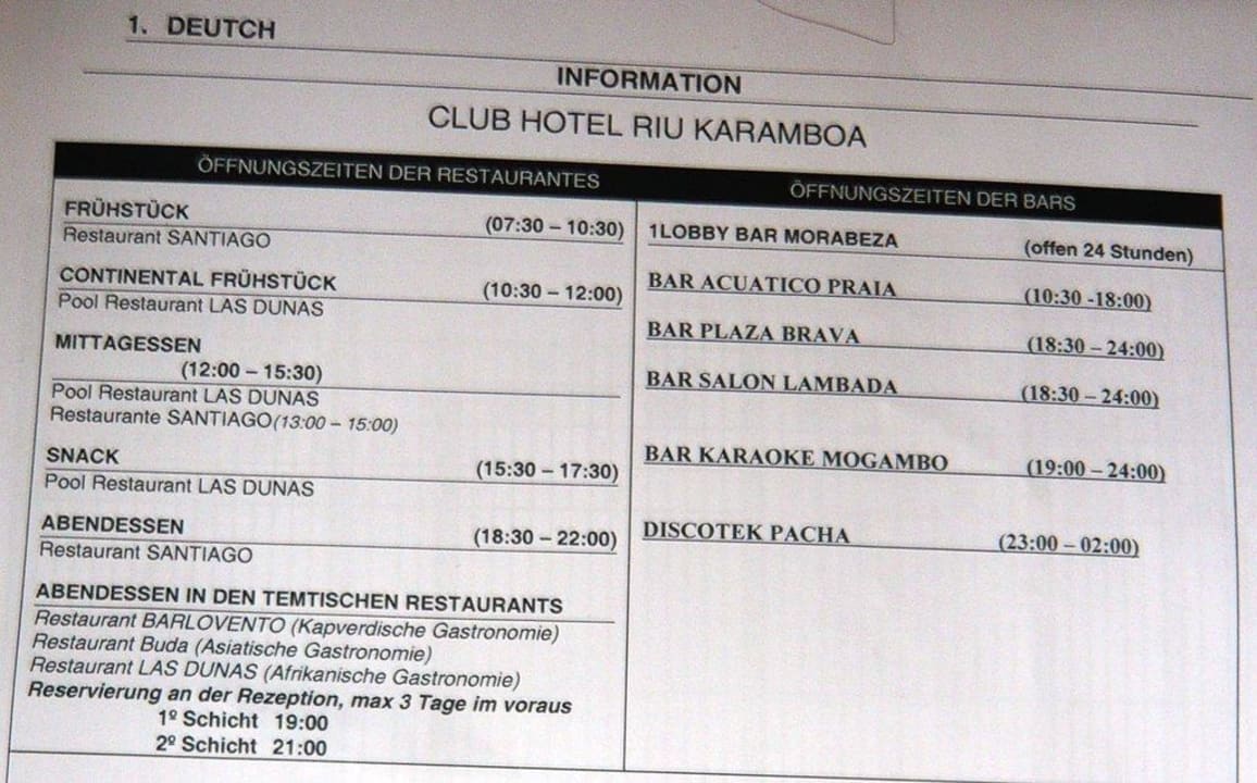 Infoblatt der Rezeption