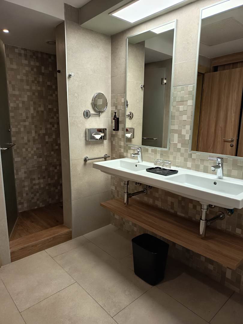 Doppelwachbecken im offenen Badezimmer