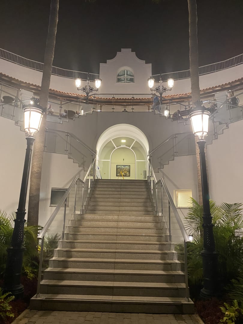Ansicht vom Pool aufwärts zum Hotel (Fahrstuhl gibt es natürlich auch 😊)