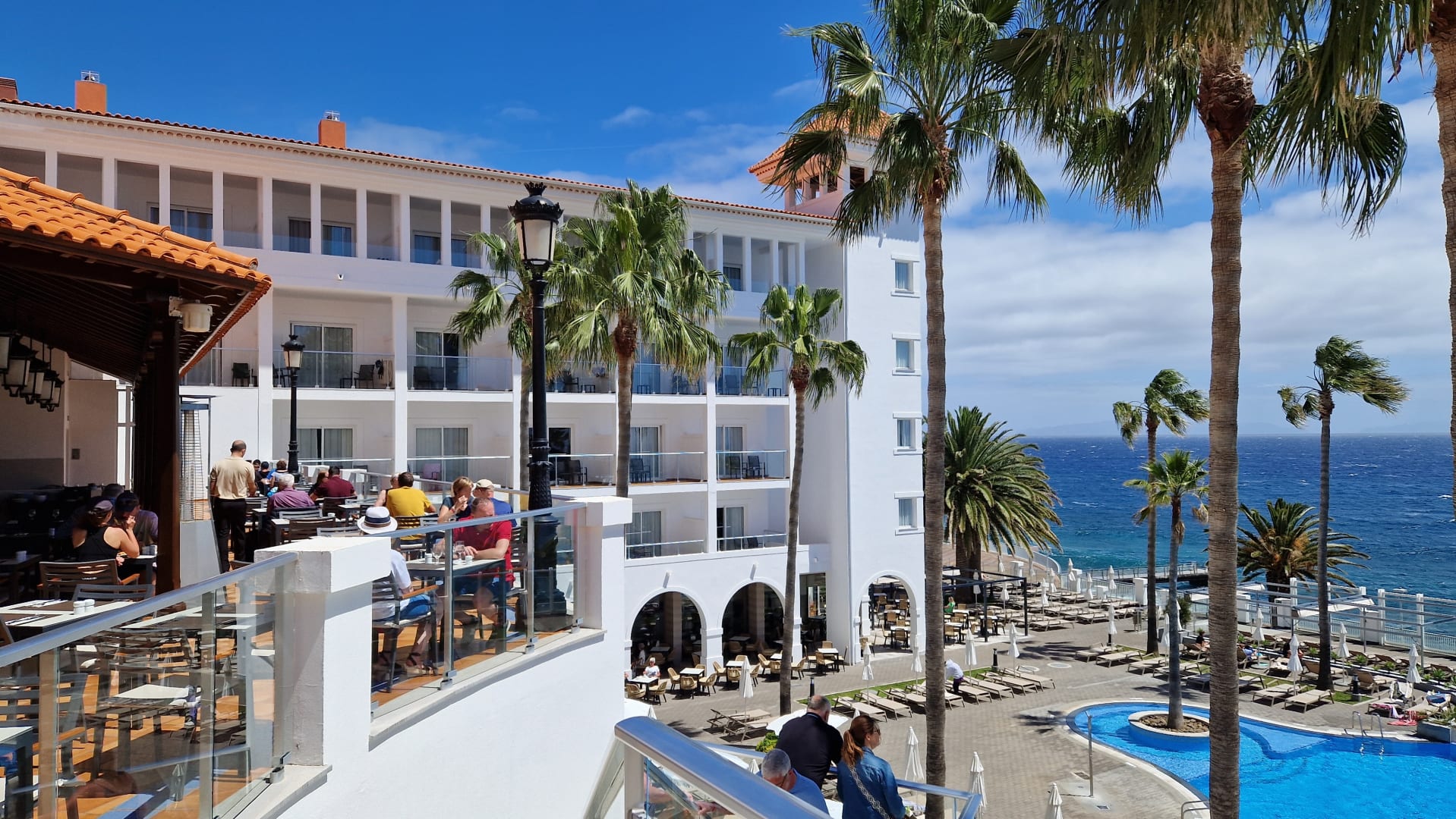 Aussicht zum Meer mit Pool, Restaurant-Terrasse