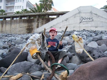 Am Steinstrand vorm Hotel