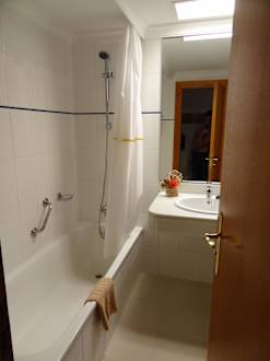 Schönes Bad, hinter der Tür ist das WC