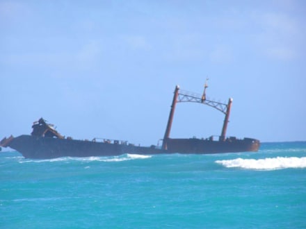 direkt vor dem Hotelstrand gestandetes Schiff.