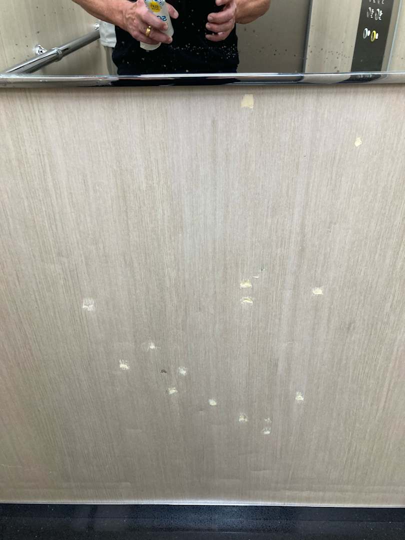 Fahrstuhlwand mit Löchern, wahrscheinlich durch Putzwagen