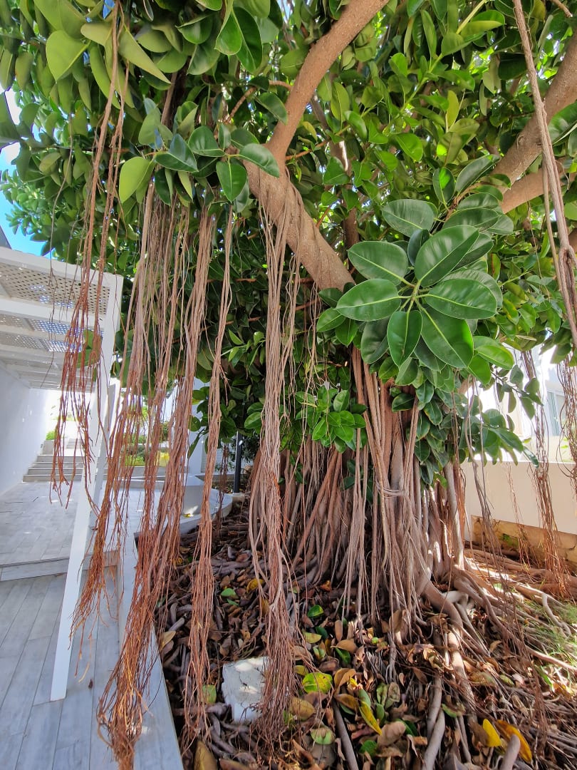 Schöne riesige Gummibaum am Treppenaufgang