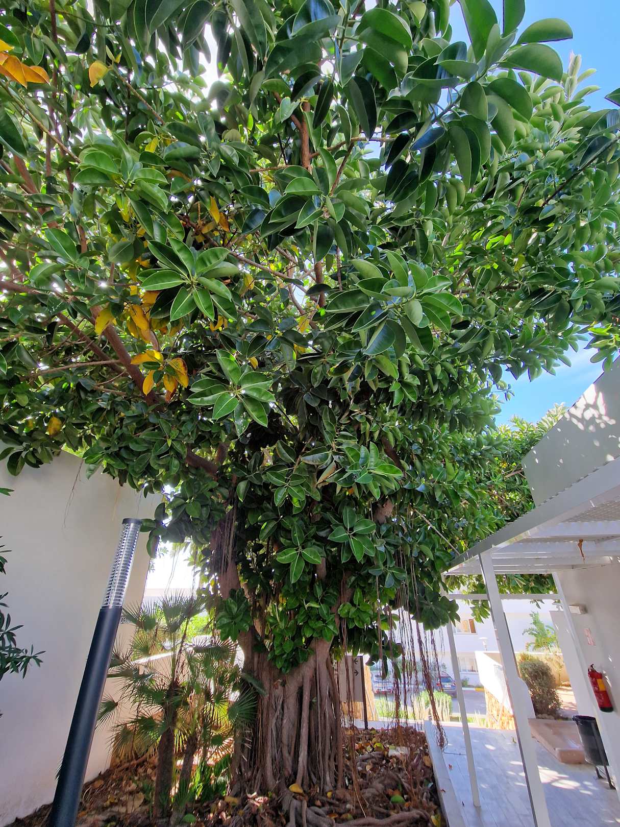 Schöne riesige Gummibaum am Treppenaufgang